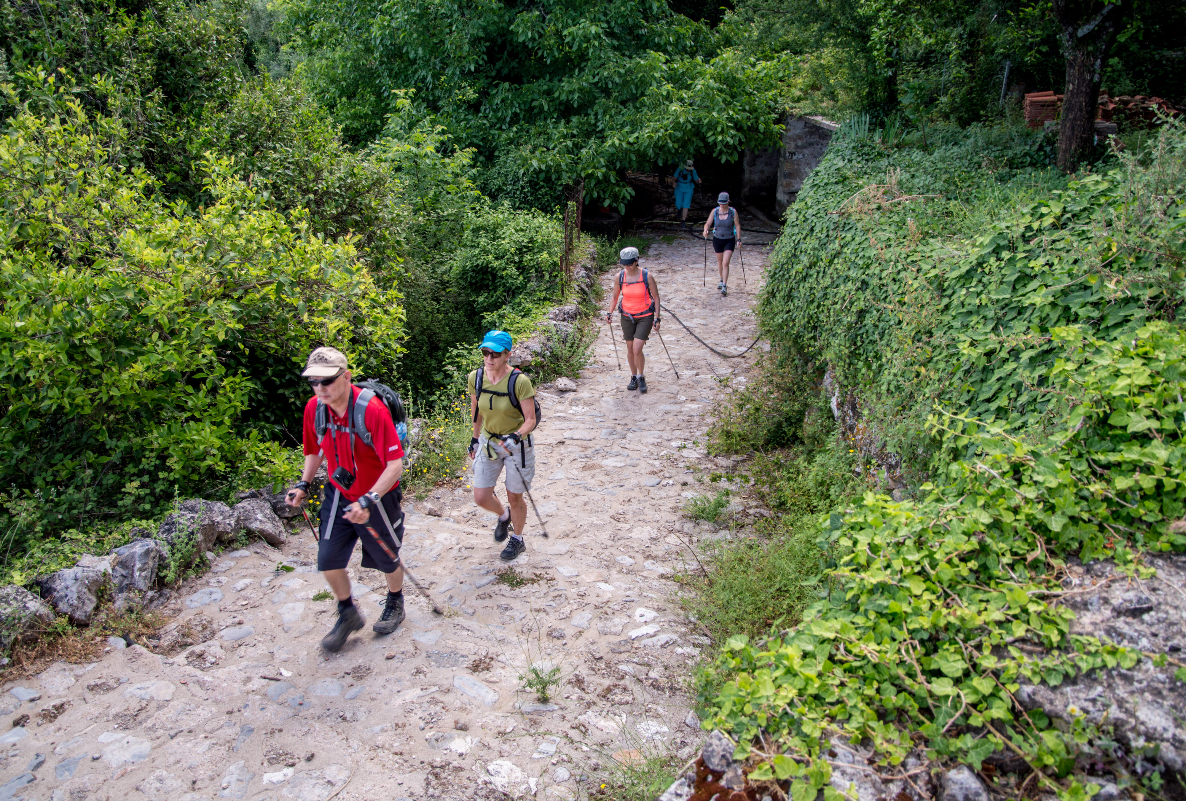 We begin our hiking trip from the cosmopolitan suburb of Kalamata the village of Kato Verga by following the cobbled path ascending west to the village of Ano Verga. A historic village perched on the mountainside with a plethora of old stone houses, narrow alleys and springs with crystal waters.